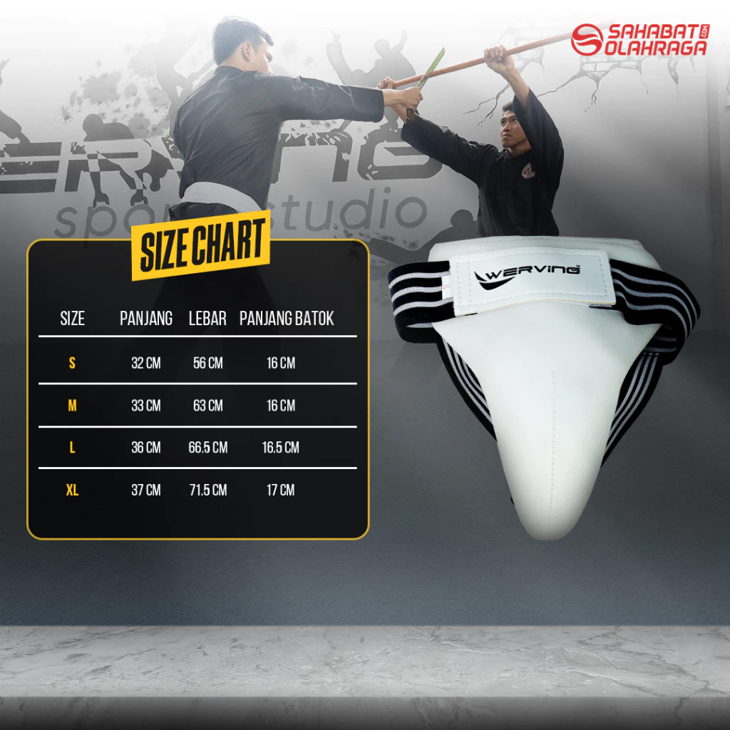 Pelindung kemaluan werving di desain dengan sangat baik sehingga dapat memaksimalkan fungsi nya untuk melindungi kemaluan pada saat aktivtas beladiri.